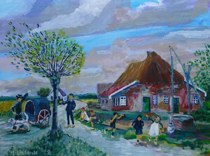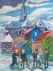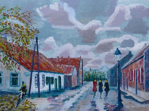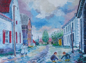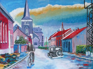 Deze schilderijen zijn gebaseerd op oude oude ansichtkaarten. Geschilderd net nadat de fotograaf vertrokken is en de personen uit hun pose verrijzen en tot de gewone zaken overgaan.